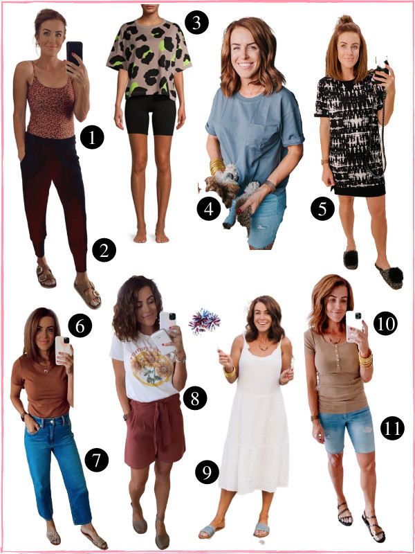 Here are the links to everything I’m officially living in this summer. And if you haven’t recently, make sure you check out Walmart and Target! They have totally stepped up their game and have been coming out with hit after hit! From the perfect boxy tee and comfy jogger to the best Bermuda short and amazing loungewear, all of my picks this summer have been under $30!